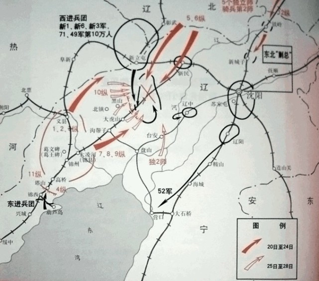 廖耀湘兵团总军力达十余万东说念主,装备细腻,多为好意思械师,是国民党在东北战场上的精锐主力。而此时的廖耀湘也意志到场面不妙,他既不宁愿陆续西进,也不肯送还沈阳坐以待毙,而是研讨先攻占黑山、大虎山,再向南撤往营口,从海上逃逸。