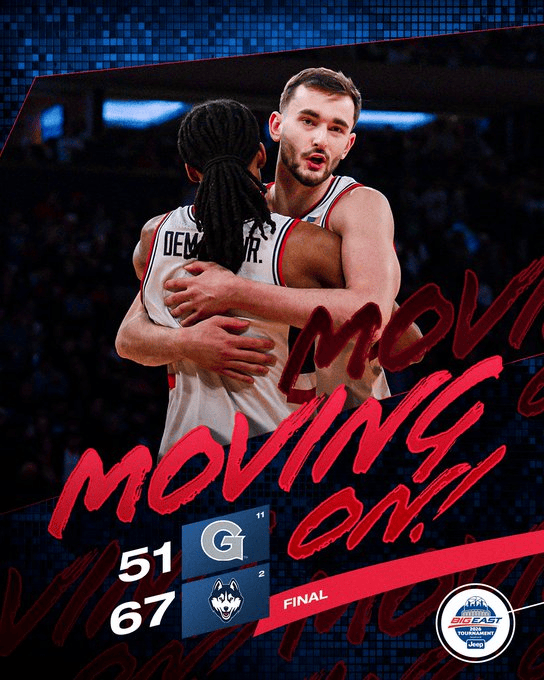 虎扑03月14日讯本日BigEast赛区(NCAA)半决赛中,全好意思第6的康涅狄格大学以67-51打败乔治城大学。