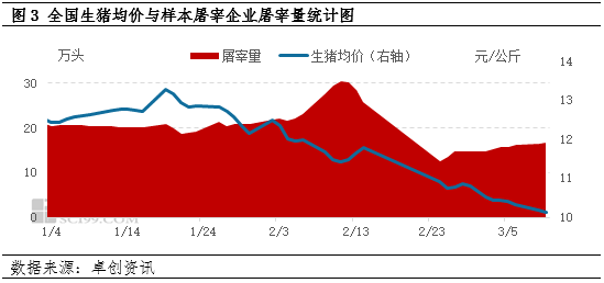 舍弃3月5日,世界生猪来回均重为125.40公斤,同比增幅1.13%,处于近4年以来同时最高水平。谈判过去气温高涨,大体新生猪需求进一步消弱,因此过去出栏体重仍有下降空间,伴跟着出栏体重下降,可出栏生猪数目继续加多。需求方面,近期需求难有显贵好转,宰杀企业入库积极性不高,生猪采购需求或看护低位。总而言之,瞻望3月中下旬生猪价钱仍有下降空间,世界生猪均价或降至10元/公斤以内。