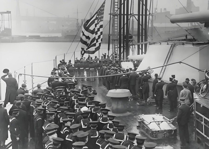“纽约”号荷戈时的升旗典礼