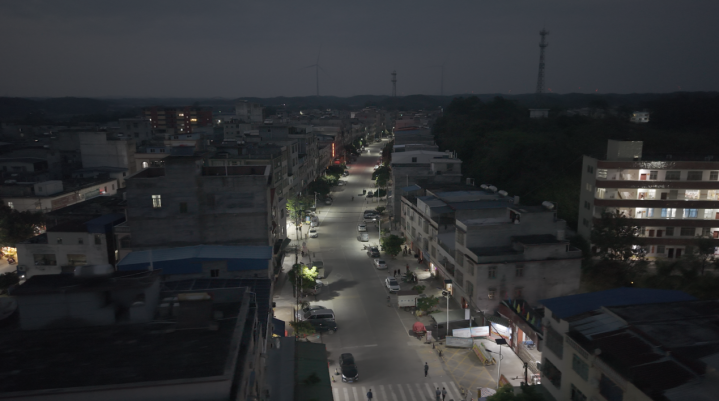 图为被光伏街灯点亮的东场镇。