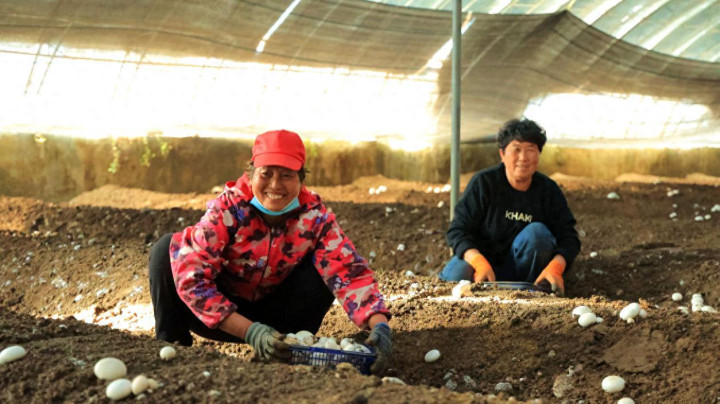 3月10日,走进河南驻马店驿城区胡庙乡臧集村的河南启慧农业科技有限公司双孢菇培育基地。春风温暖,关怀地拂过这片地盘,连片的大棚整都有序地成列着,在明媚阳光的照耀下,荒疏着浅浅的光芒,仿佛在诉说着丰充的但愿。