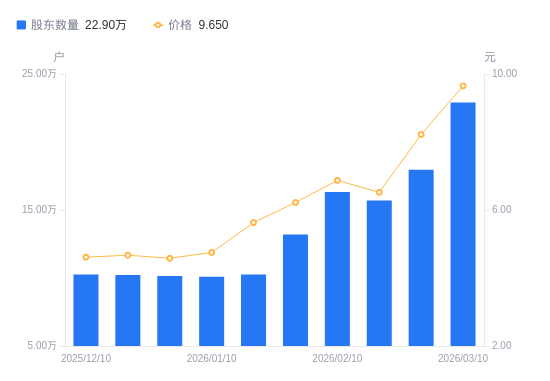 日历A股户数(户)运动A股户均执股数(股)户均执股市值(万元)2026-03-1022903316538.5715.962026-02-2717958421092.5217.342026-02-1315697524130.4615.732026-02-1016326323201.0915.942026-01-3013202628690.4017.852026-01-2010263136907.7520.782026-01-1010087837549.1117.842025-12-3110143337343.6517.102025-12-2010212037092.4317.322025-12-1010265636898.7617.02