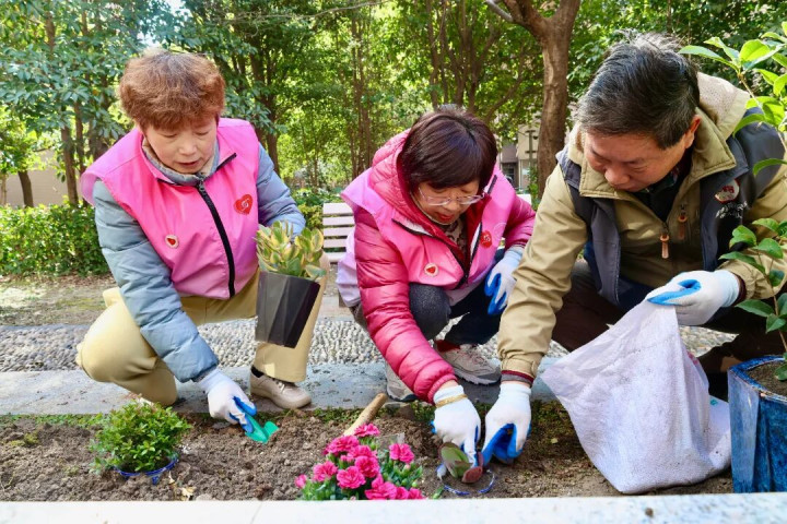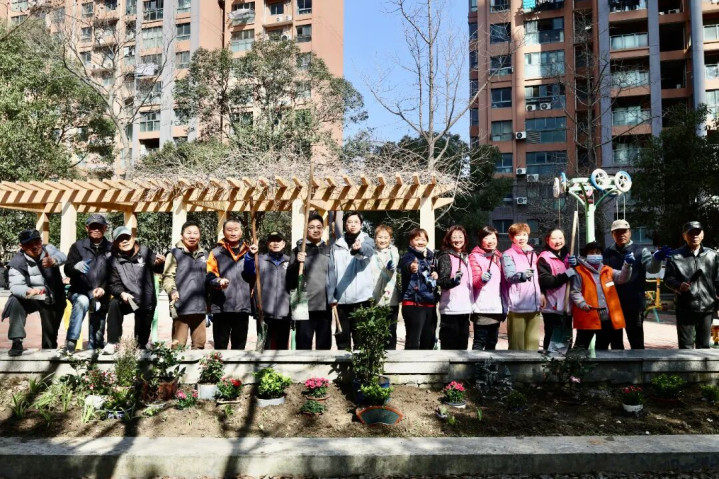 3月12日是植树节,在徐汇区华泾镇盛华景苑小区,不少住户和志愿者聚拢在小区中心花圃绿地,举办了一场有迥殊意旨的植树节活动。