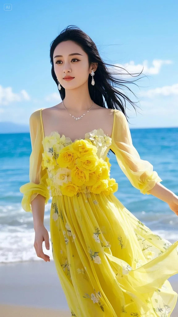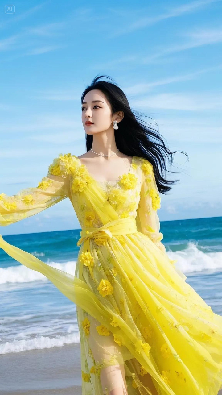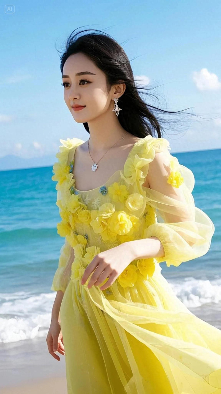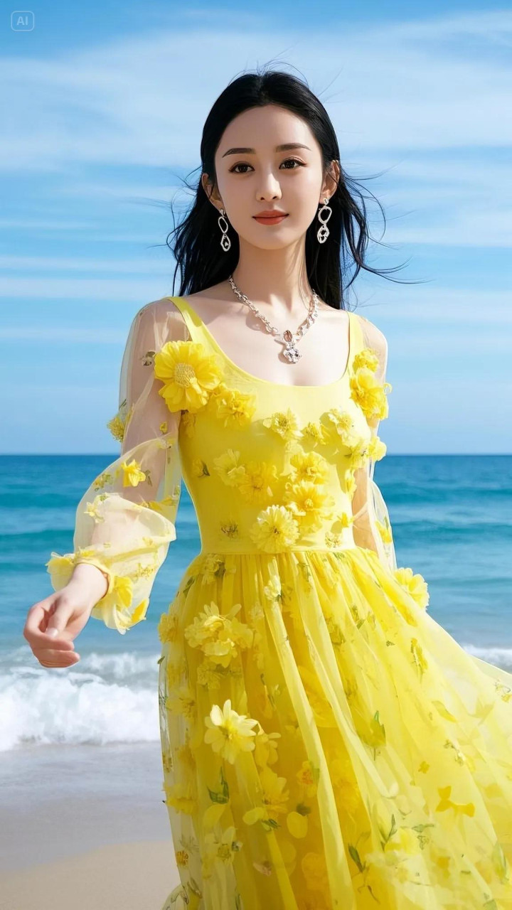赵丽颖这组海边黄裙造型径直把氛围感拉满!一袭明黄色纱裙缀满立体花朵,微细的网纱材质随风飘扬,衬得她肌肤胜雪,眉眼间尽是隆重与灵动,像把统共这个词春天的阳光齐穿在了身上。