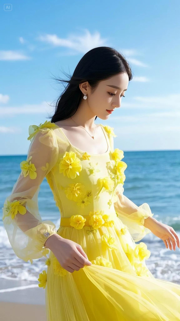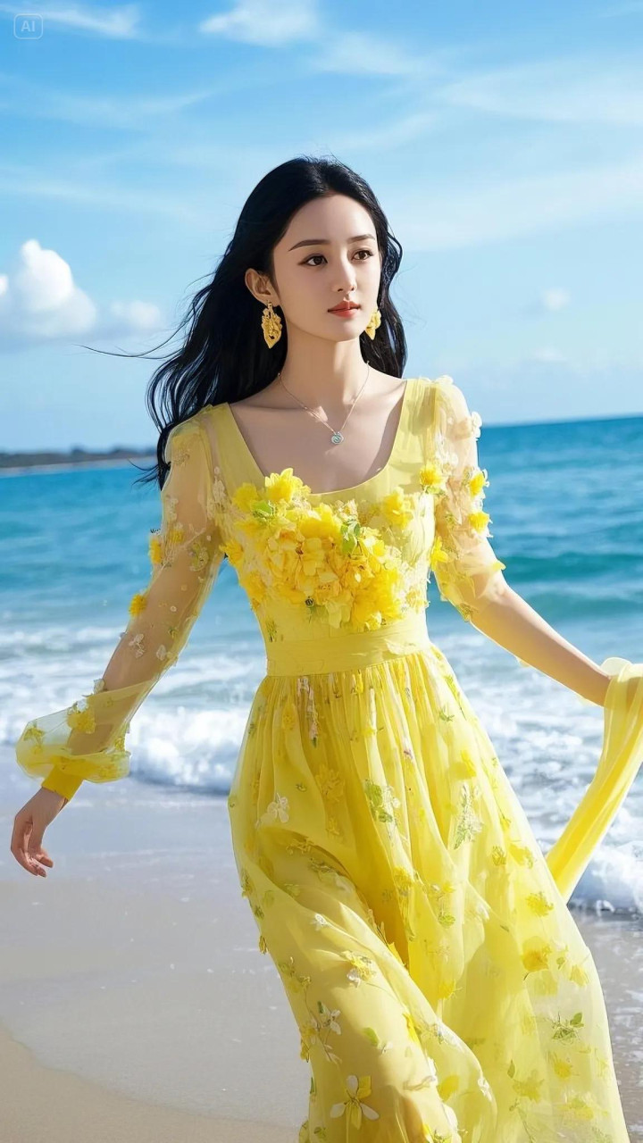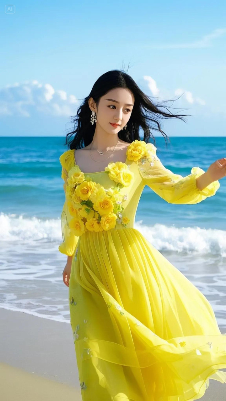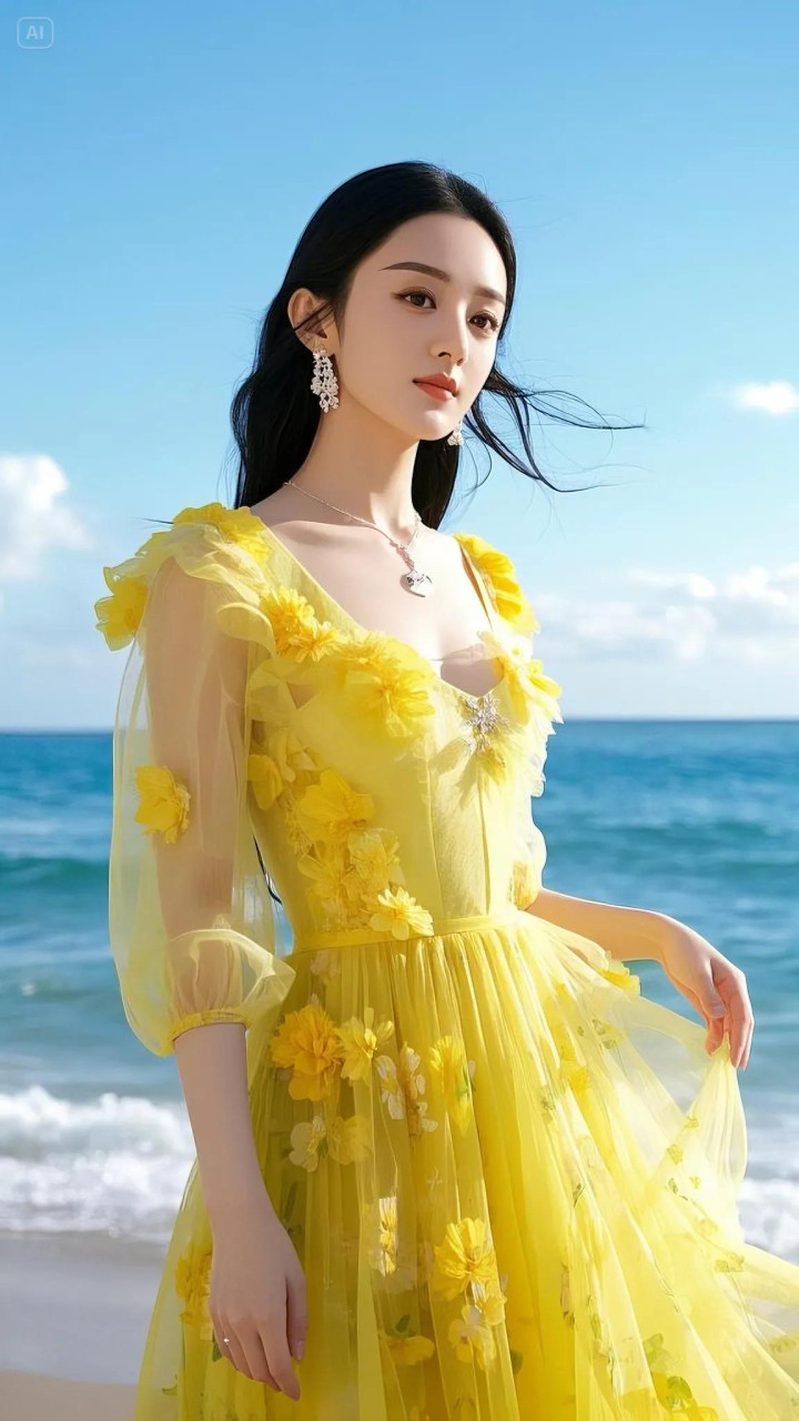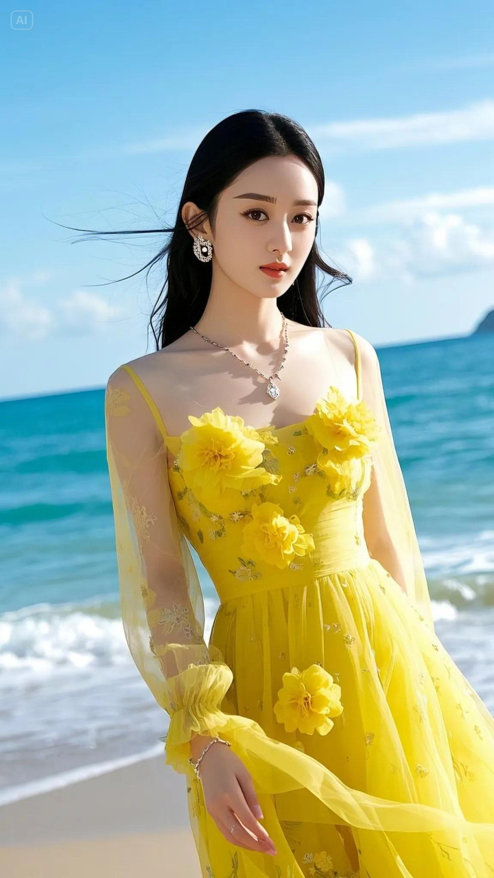 赵丽颖这组海边黄裙造型径直把氛围感拉满!一袭明黄色纱裙缀满立体花朵,微细的网纱材质随风飘扬,衬得她肌肤胜雪,眉眼间尽是隆重与灵动,像把统共这个词春天的阳光齐穿在了身上。