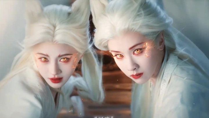 开篇即是慢镜头,鞠婧祎翡翠绿袍配银发白狐造型,精致得透着郭敬明最爱的落空感,可一张嘴,配音有气无力像没睡醒。