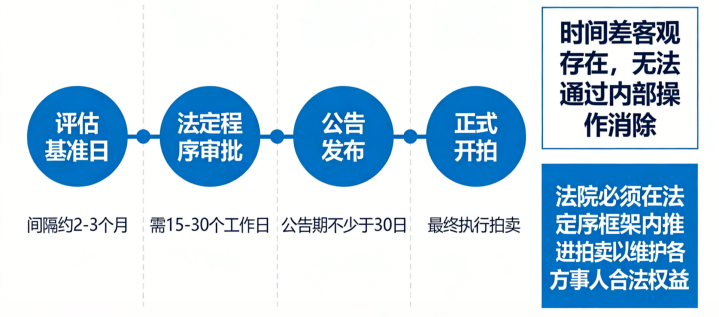 因为法律阐发重要在时间上有滞后性。从评估基准日到认真开拍经常阻隔数月,这个时间差是客不雅存在的,无法通过里面操作排斥。法院必须在法定重要框架内推动拍卖,这亦然为了珍视各方当事东谈主的正当职权。