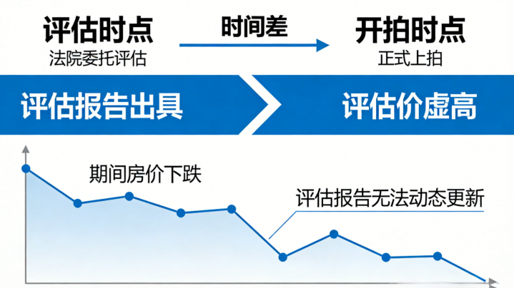 第二,评估时点与开拍时点存在时间差。 从法院托福评估到认真上拍,短则两三个月、长则半年。这时候房价可能也曾下落,但评估陈述无法动态更新,导致开拍时的评估价显得“虚高”。