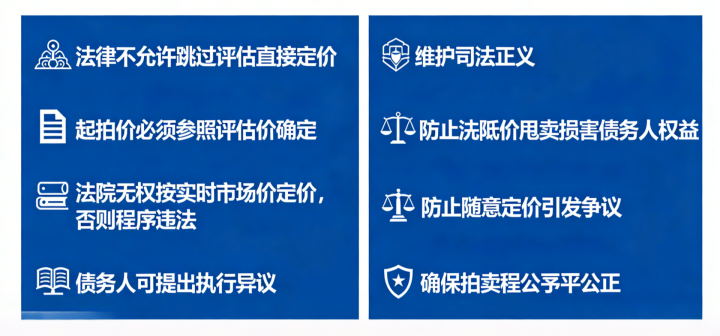 第三,法律不允许跳过评估平直订价。 左证最高法例章,起拍价必须“参照评估价确信”。法院无权按及时阛阓价订价,不然重要造孽,大阳城app注册下载债务东谈主不错建议实行异议。这套轨制联想的初志,恰是为了珍视法律阐发正义——既珍视法院廉价甩卖损伤债务东谈主职权,也珍视庸俗订价激励争议,确保拍卖重要的公谈平允。