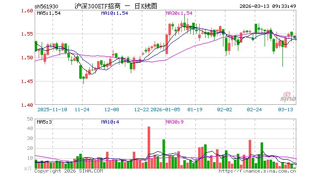 3月13日,沪深300ETF招商(561930)开盘涨0.00%,报1.545元。沪深300ETF招商(561930)重仓股方面,宁德期间开盘跌0.41%,贵州茅台涨0.03%,中国吉祥跌0.37%,中际旭创跌1.55%,紫金矿业跌1.50%,招商银行跌0.10%,大阳城app新易盛跌1.48%,好意思的集团跌0.58%,兴业银行跌0.05%,寒武纪涨1.10%。