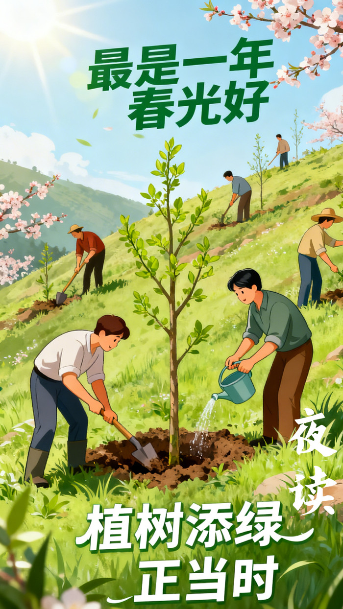 正在凝听的你,接待收听今天的《夜读》,今天为群众共享一篇王学明的著述《最是一年春光好植树添绿正其时》。